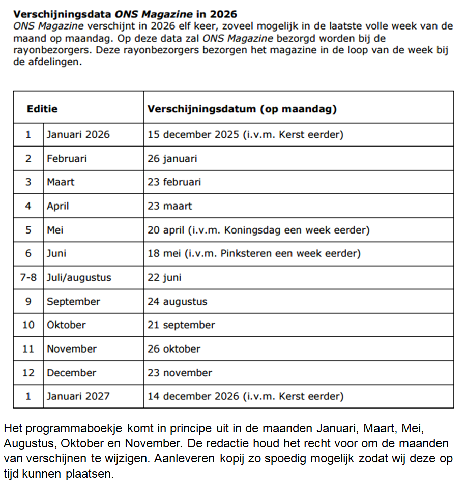Het programmaboekje verschijnt 6 keer per jaar.